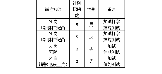 ③資格初審合格的考生,報(bào)考01、02崗聘用制書記員的考生,同步進(jìn)入考場(chǎng)進(jìn)行打字技能測(cè)試;報(bào)考03、04崗輔警的考生,同步進(jìn)入體測(cè)場(chǎng)地進(jìn)行體能測(cè)試。
